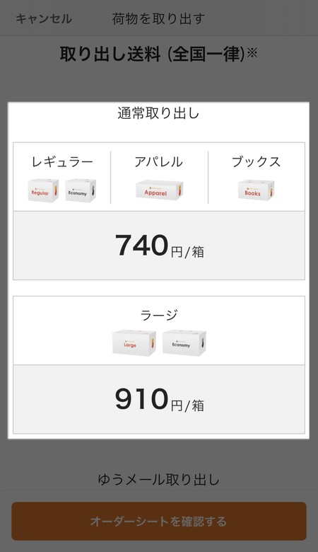 レギュラーボックスの場合、送料は1箱あたり740円で、ラージボックスの場合は910円となる。