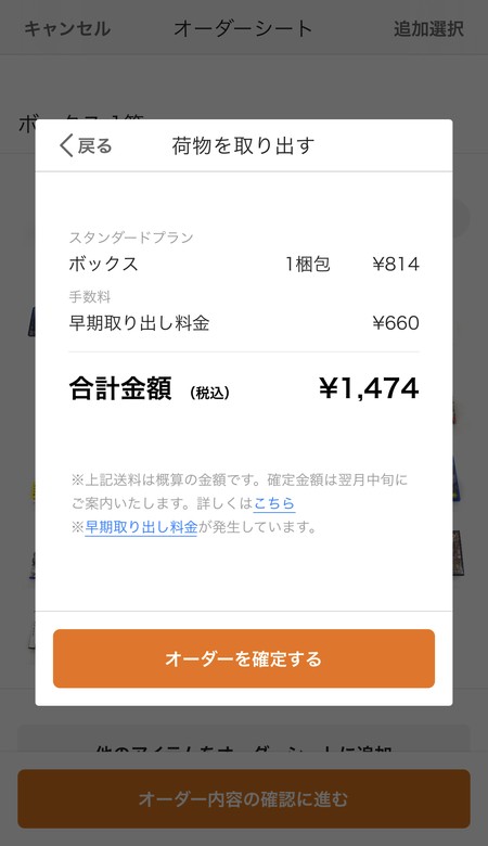 最後に箱を届けて欲しい日時と、箱に物を詰めた後に取りに来てもらう集荷日時を登録すればOKだ。